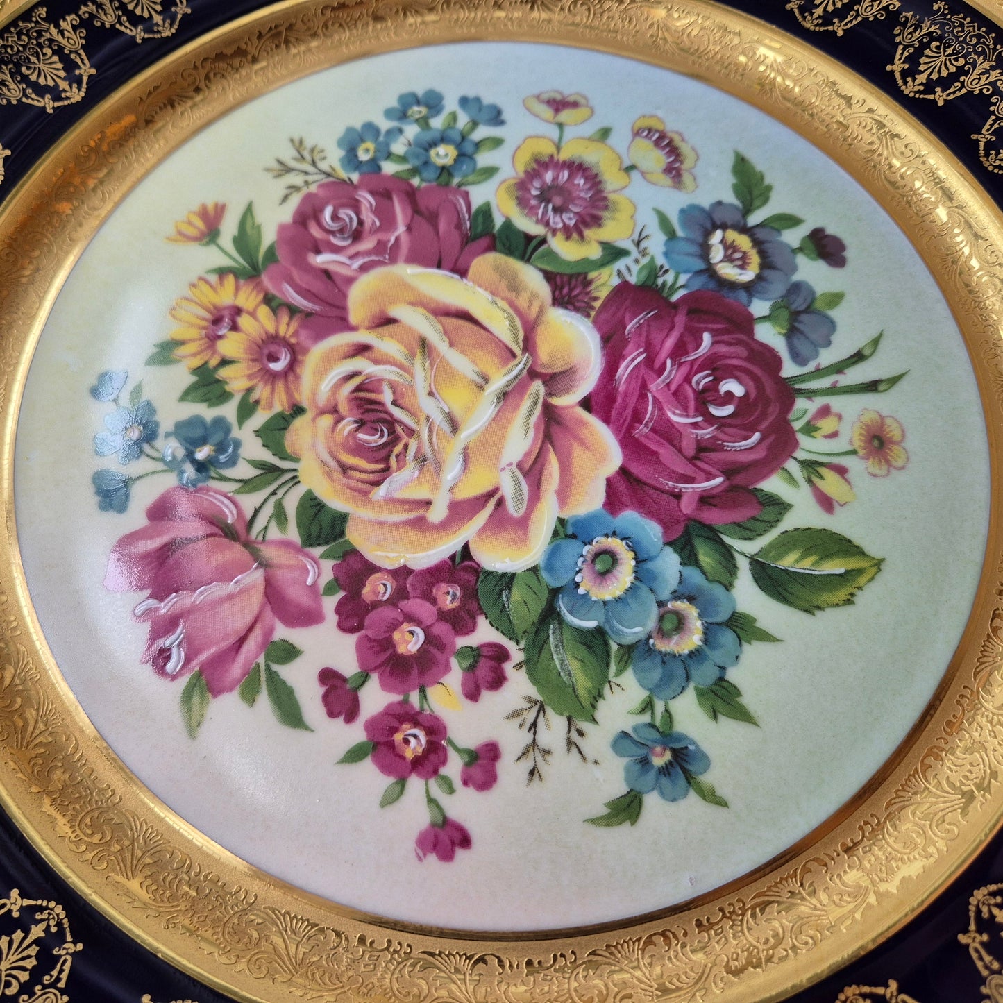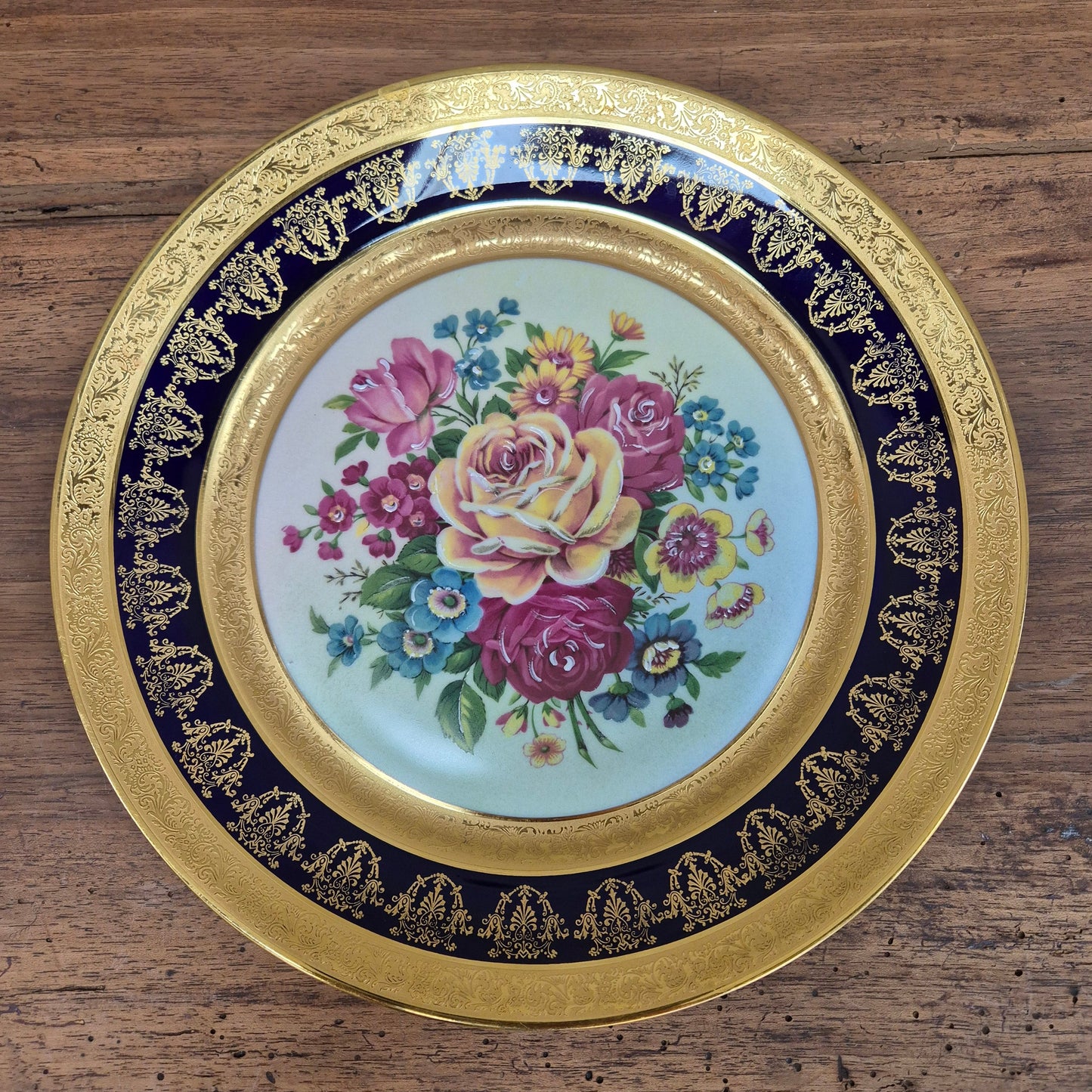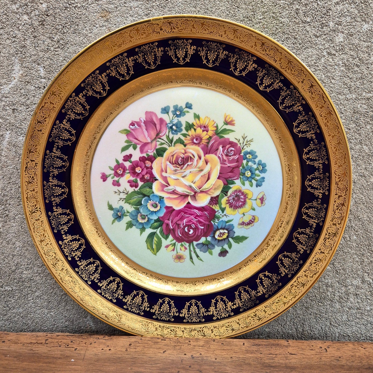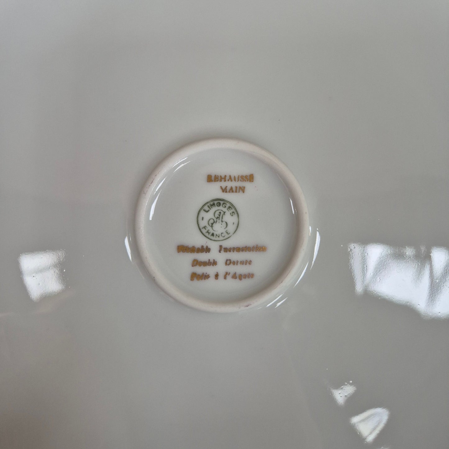 Assiette décorative en Porcelaine de Limoges (réhausse main). Décor floral au centre avec son contour bleu, doré. Très beau dessin en relief (voir les photos)