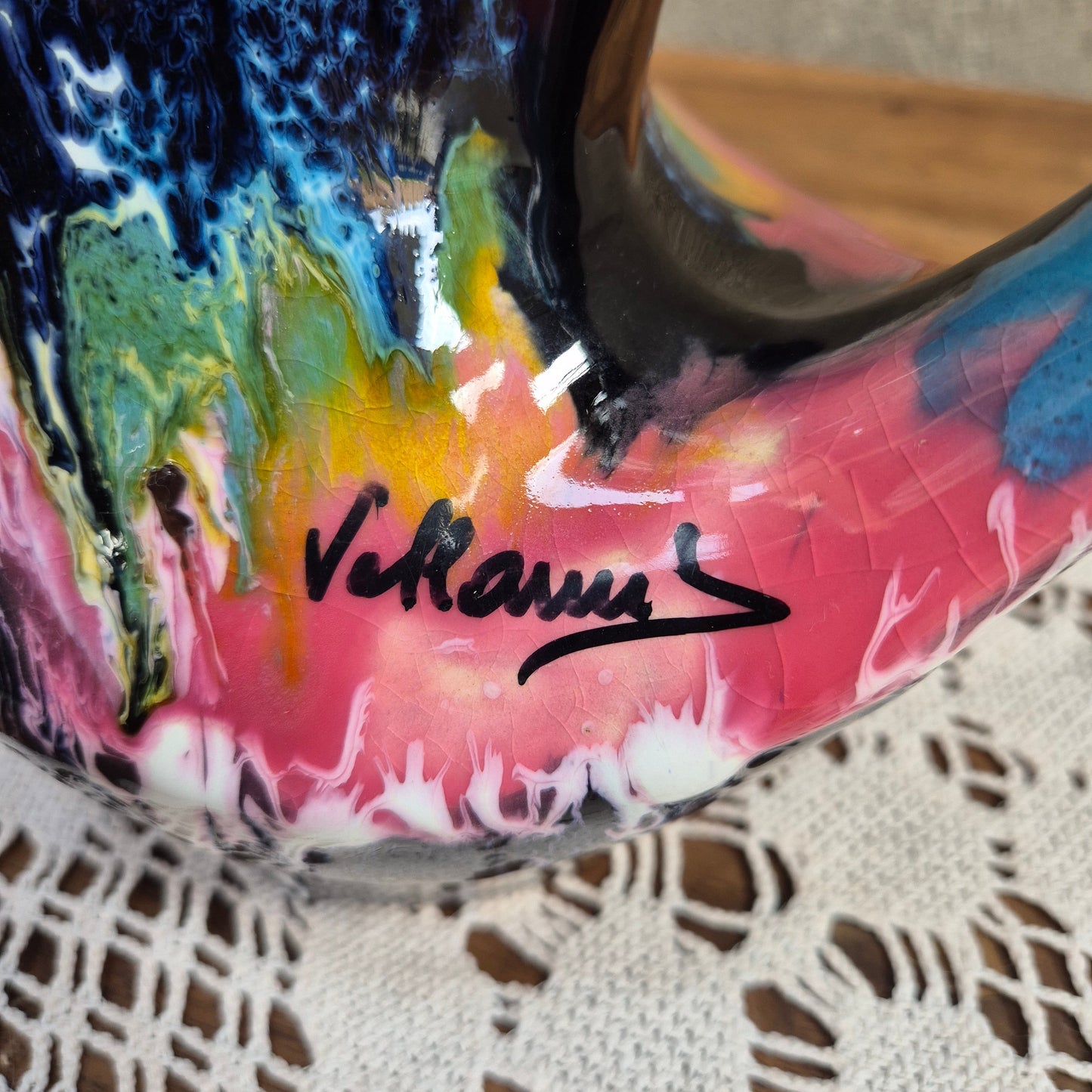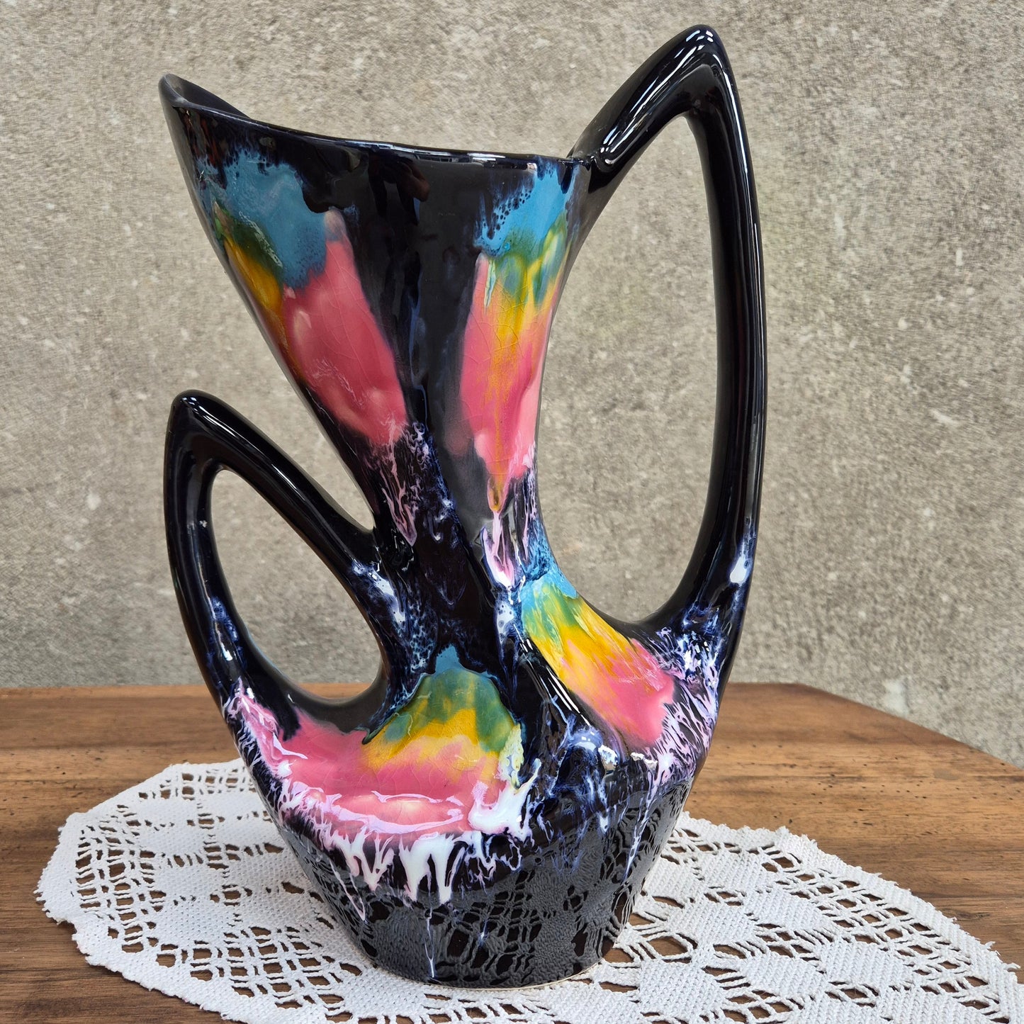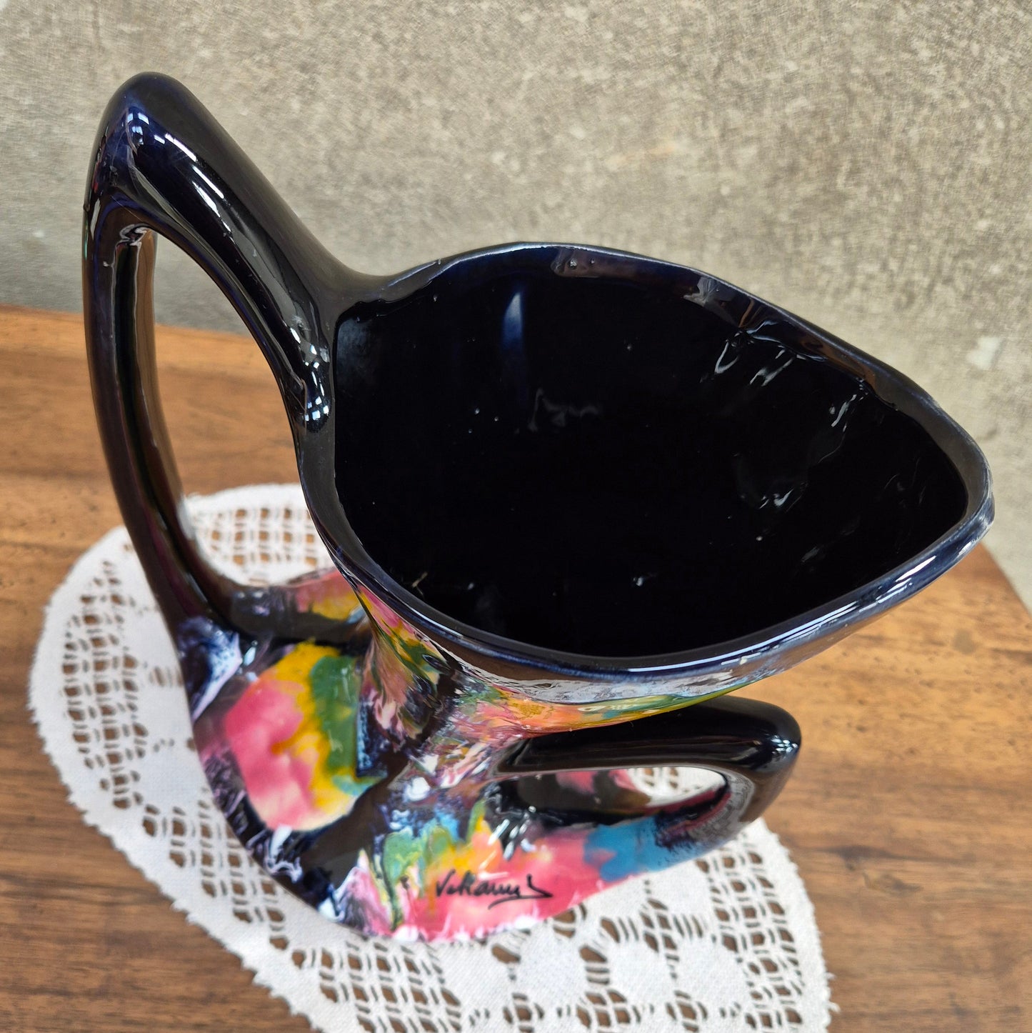 Vase sur fond noir et multicolore "Vallauris" asymétrique, des années 70.