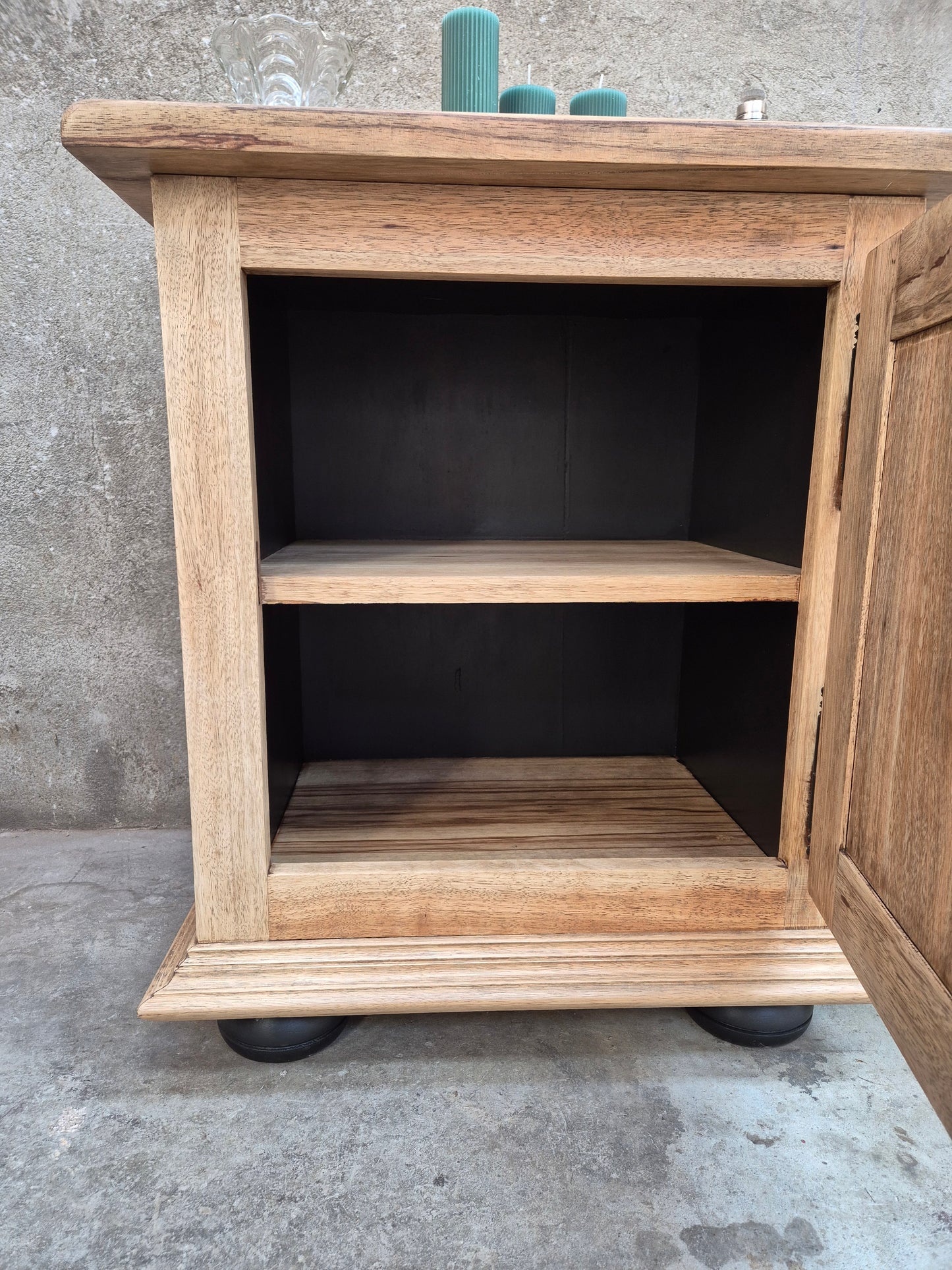 Relooké avec soins. Poncé, traité et entièrement vernis. Pieds et intérieur peint en noir mat.