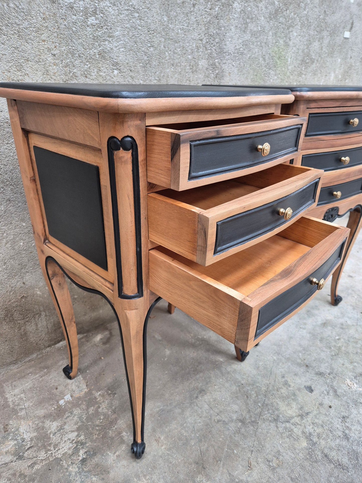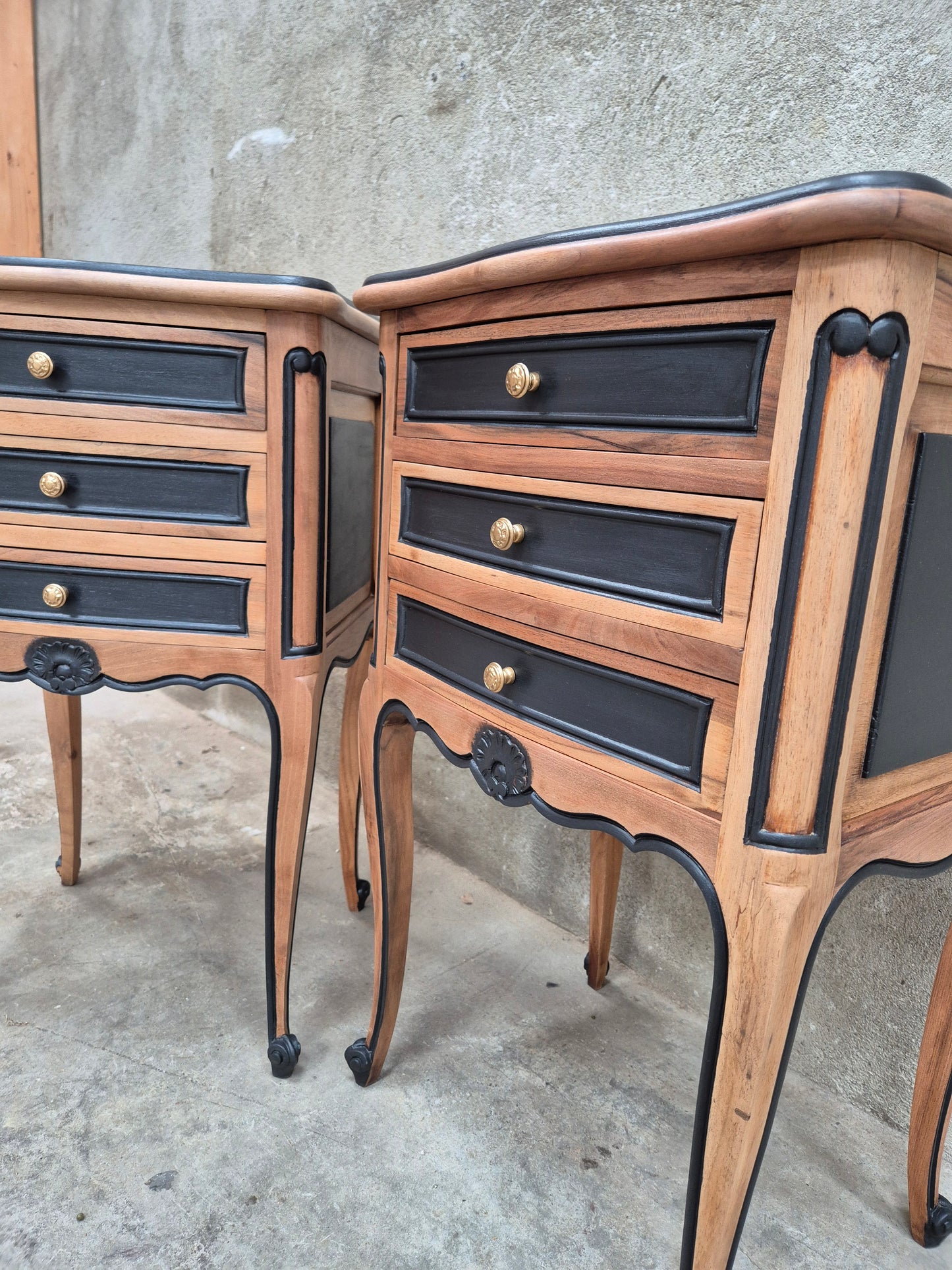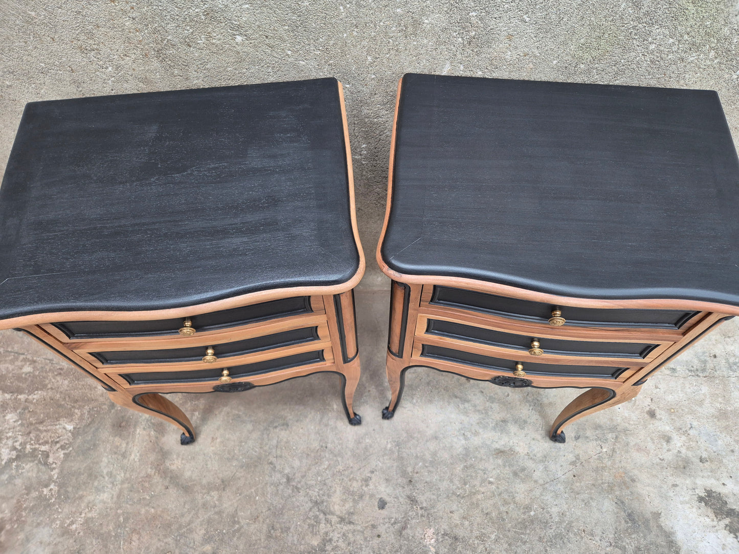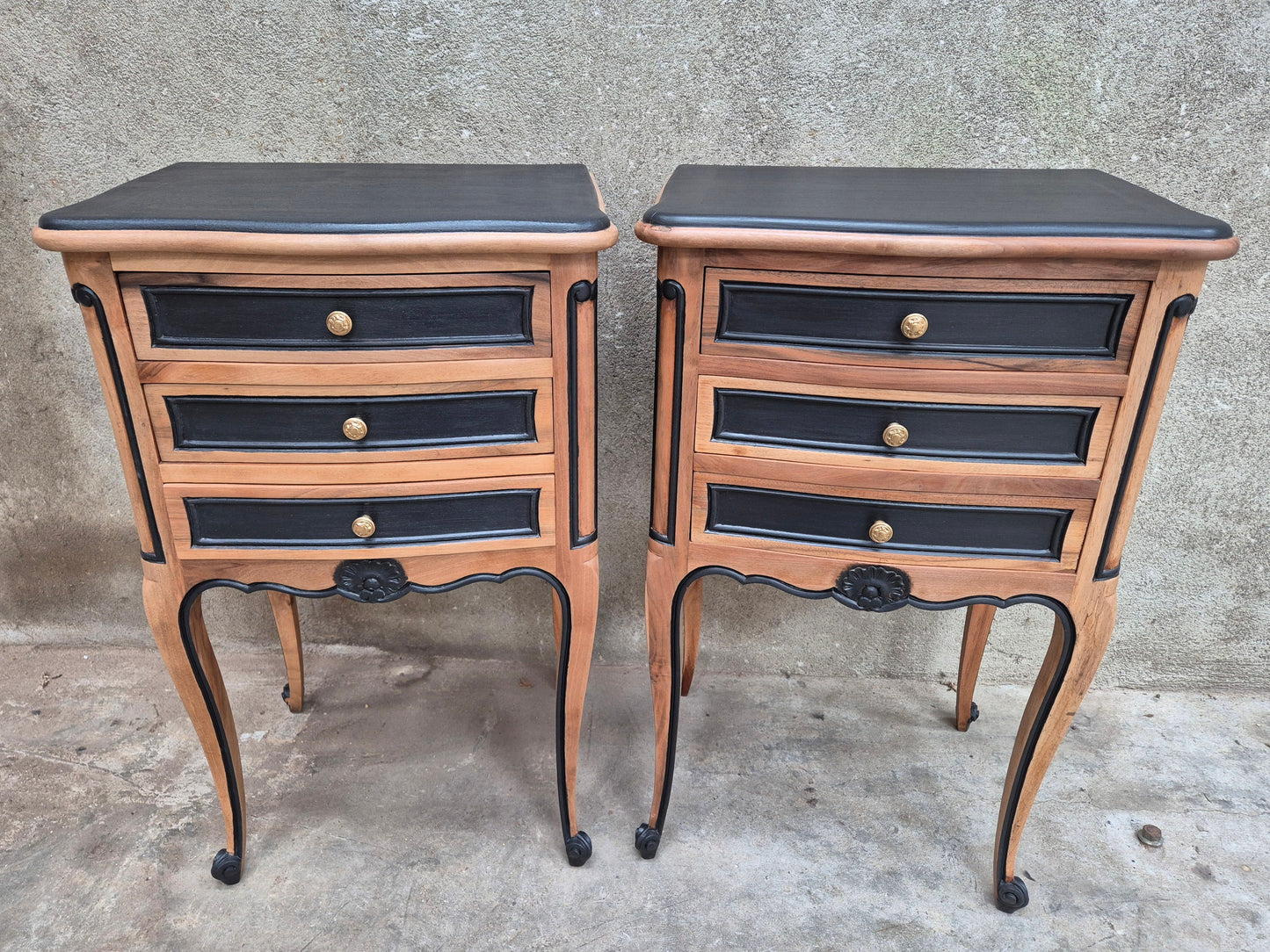 Lot de deux tables de chevet de style Louis XV en merisier.