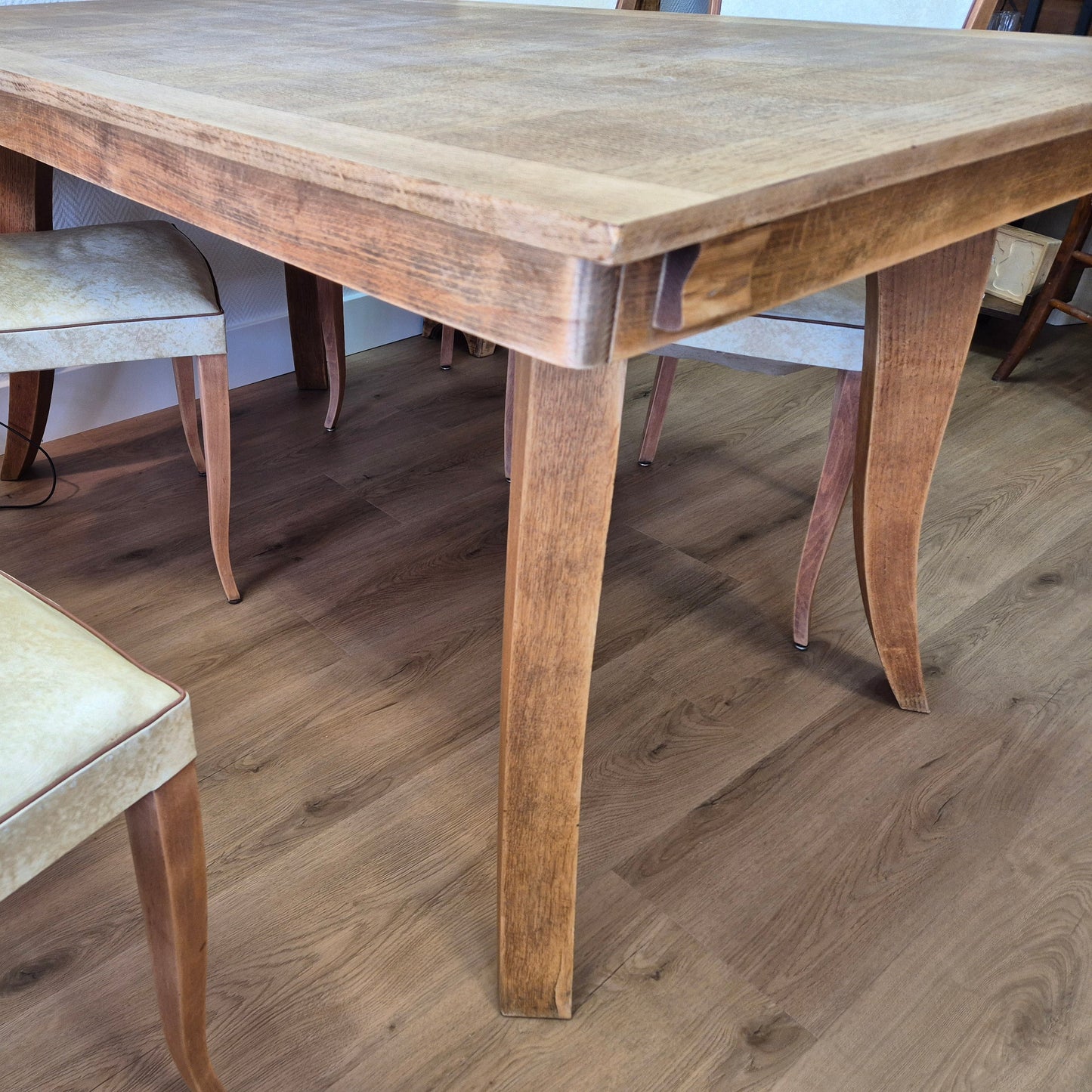 En très bon état. Nous avons restauré cette table (poncé, traité et protégé avec du vernis incolore mat)