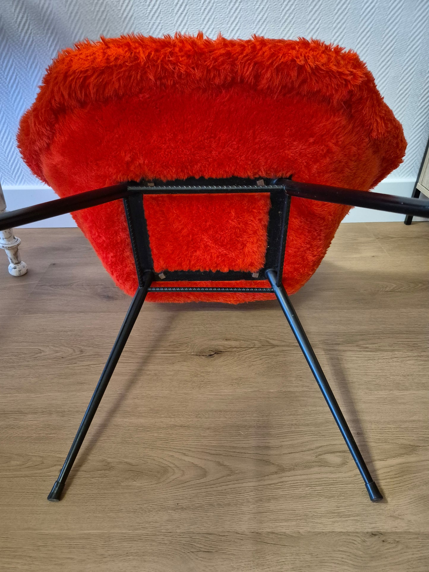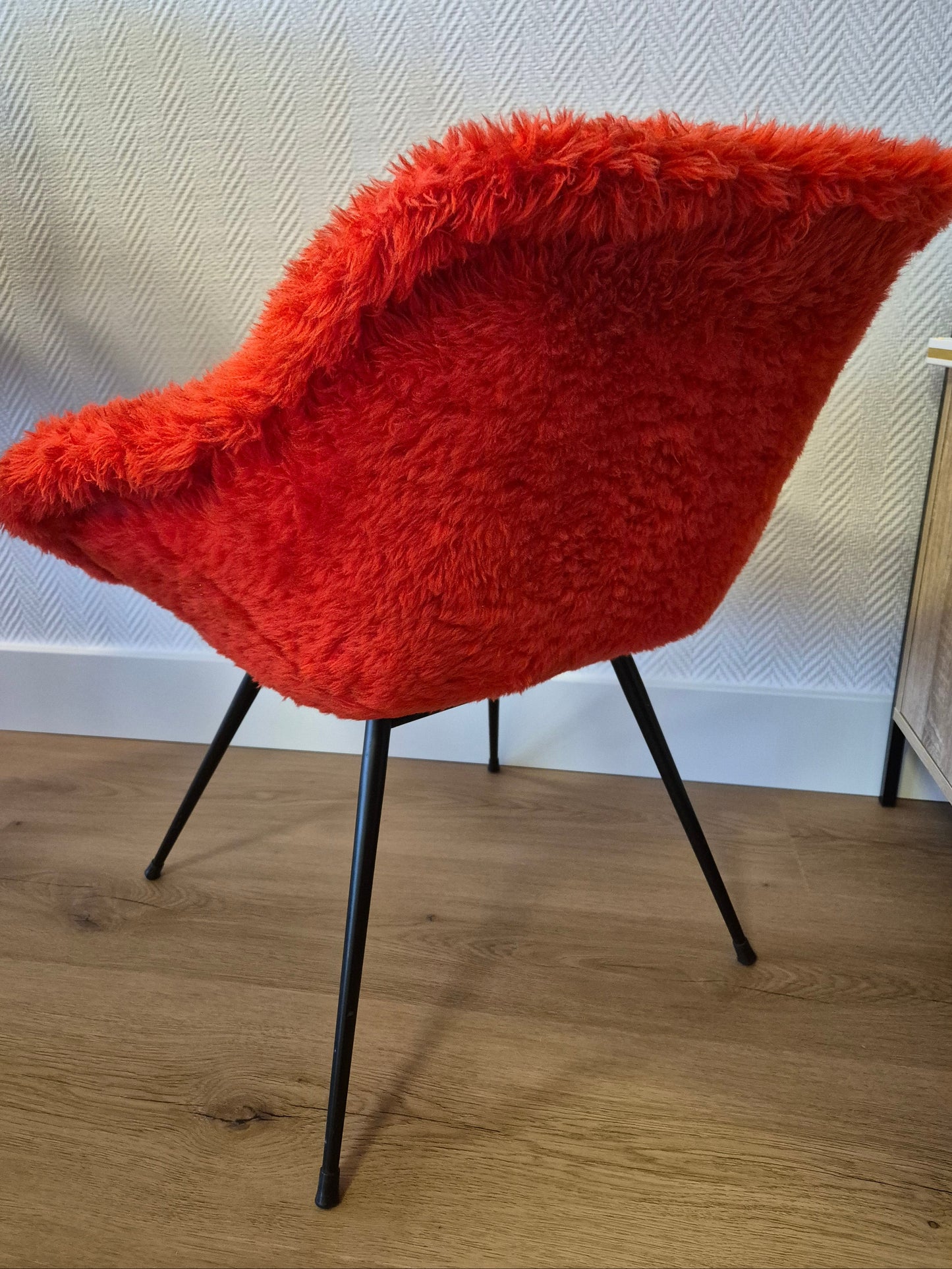 Chaise moumoute rouge vintage des années 60 - 70.
