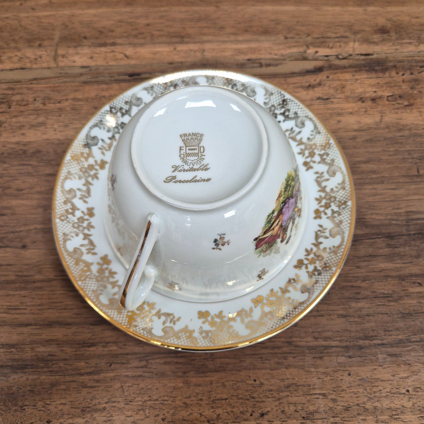 Une grande tasse avec la sous-tasse en véritable porcelaine (F.D Chauvigny).