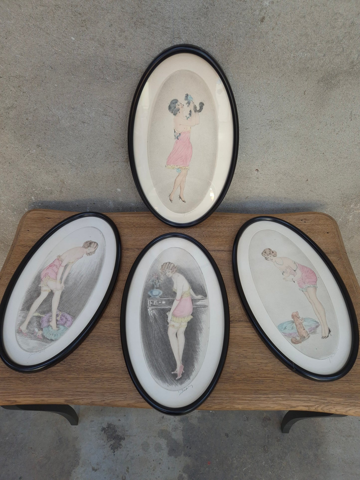 Quatre gravures "Art Déco" des années 20-30, signées "Drian".