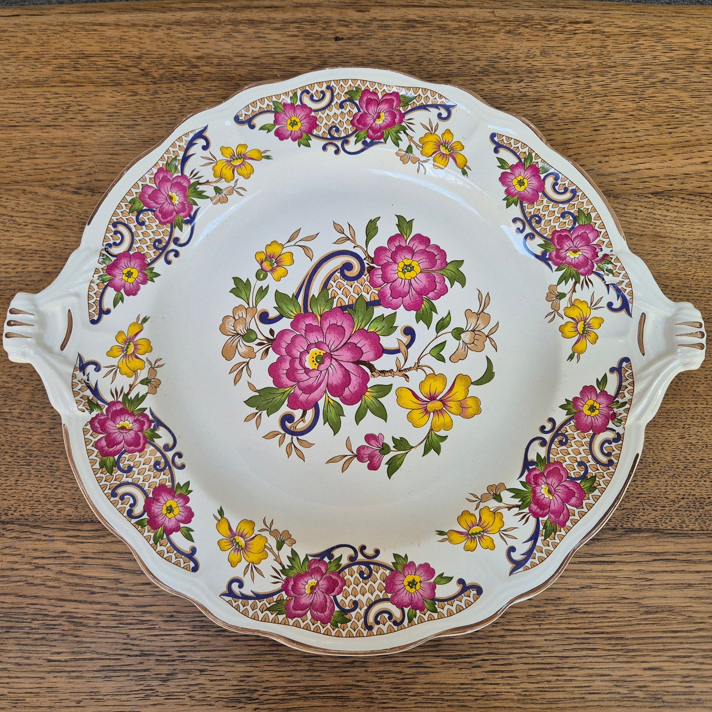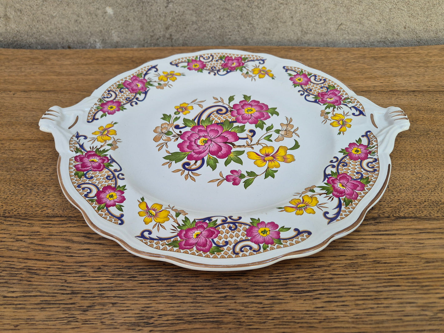 Plat décoratif de la manufacture "SALINS". Beau décor floral dans les tons roses et jaunes.